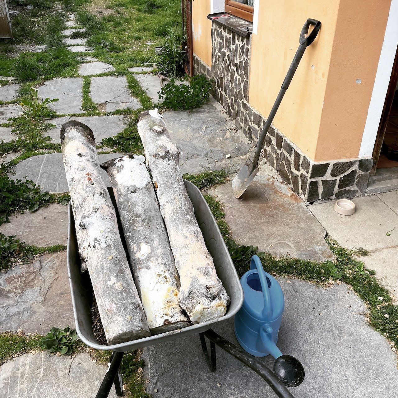 - na instagramu sleduju různý zahrady a zahradníky. Líbí se mi, jak ukazujou, co u nich kvete, má zelený plody... a říkám si, jak je zajímavý, že na tak malým kousku světa, jako je ČR můžou bejt takový rozdíly. Někde už maj po třešních a u nás ještě nedozrály. Někde sklízej okurky a nám sotva začly kvést. Tak jsem napnutej, jestli stihnout dozrát rajčata a papriky... A počítám, že napínavý to bude ještě hezkej dalších pár let, než poznáme, jak to tady u nás vlastně chodí. - do země jsme dostali sadbu hlívy.- a od začátku roku jsme vyčerpali 9000 litrů vody na zalívání. A to tu prší fakt dost. Ve fázi dva naší zahrádky asi budu vymejšlet, jak zalívat nějak jinak, než chozením s konví