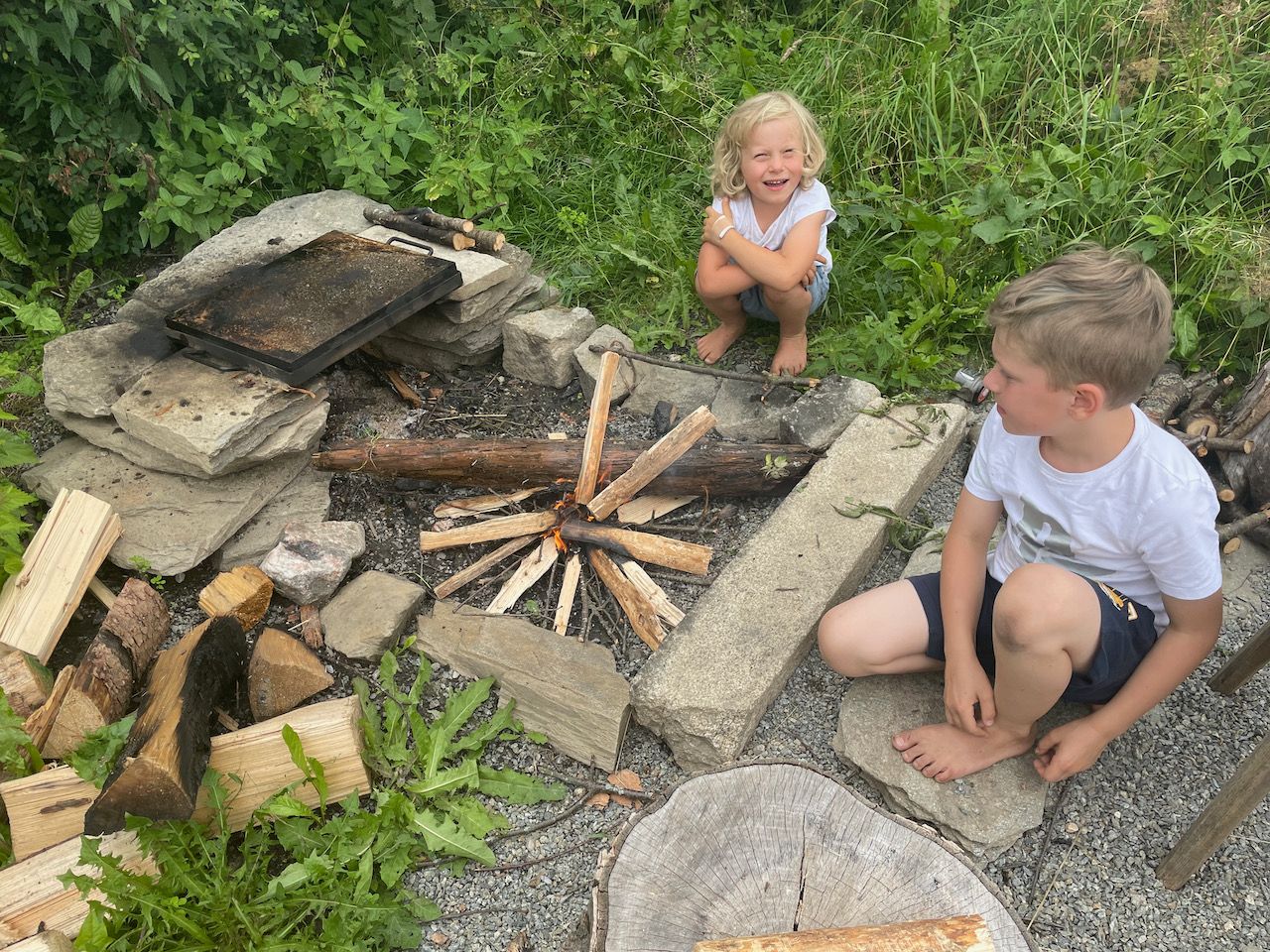 - kluci rozdělali sami svůj první oheň a pak jsme zkoušeli, co všechno hoří a co se škvaří. A nejlepší pokus ever byl jednoznačně cukr ve skleničce.