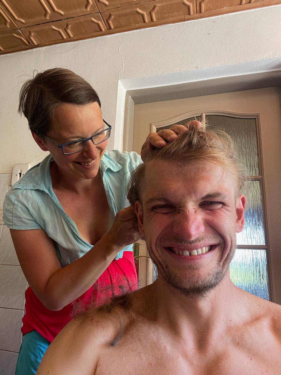 - jsem hrozně vděčnej za kamarády, kteří nám pomáhají s rozličným stěhováním, půjčováním věcí... vazby pomalinku navazujeme i na druhý straně republiky - vyměnili jsme starej gauč za vajíčka a zavařeninu a dostali k tomu nabídku pomoci, kdyby bylo třeba. Soused od vedle, co tam kempí v maringotce, nám nosí fotky, jak to u nás vypadalo dřív a klukům říká, ať mu říkaj dědo...
