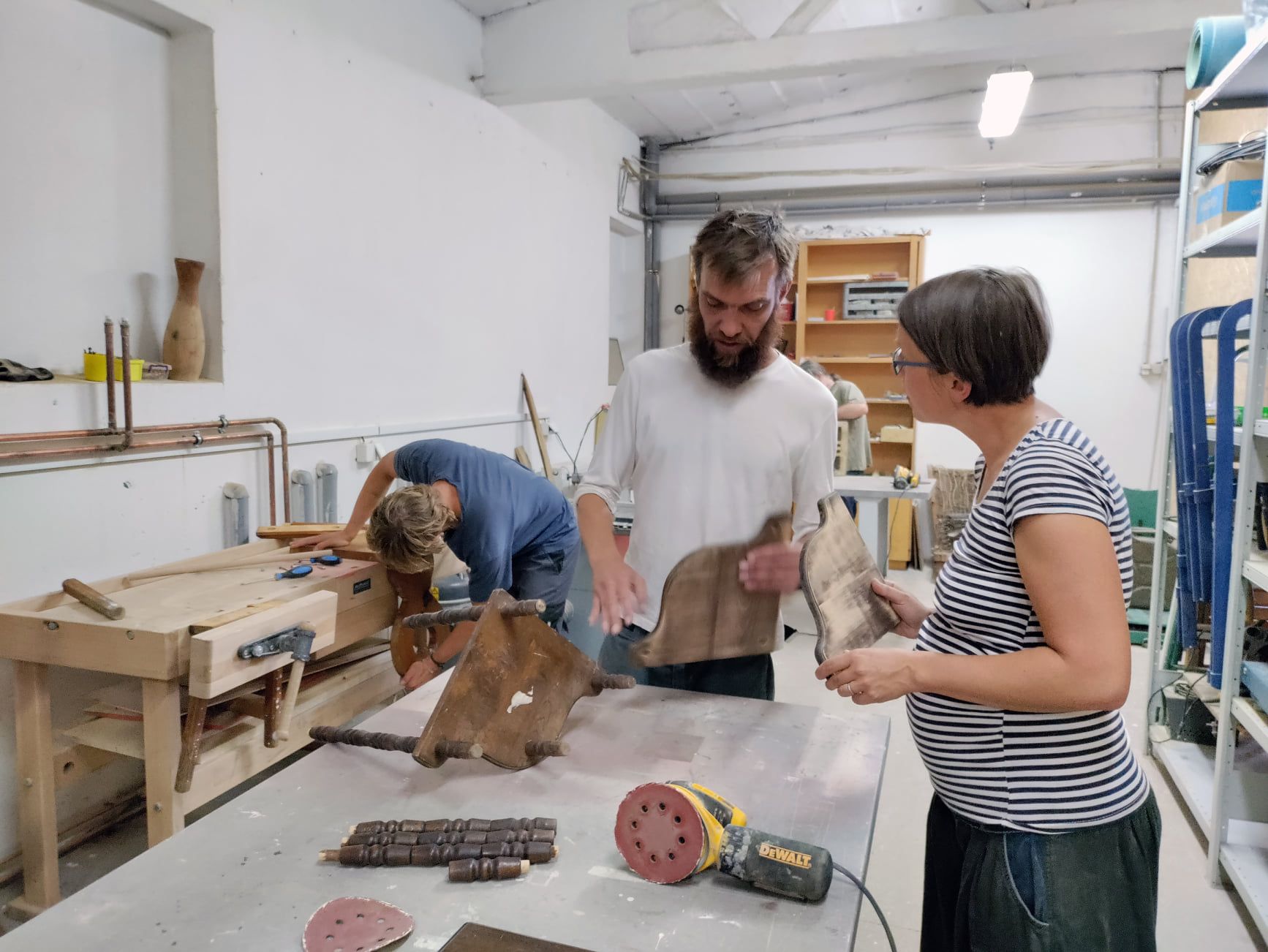 - byli jsme na kurzu renovace starého nábytku v Kabinet CB. A tak máme doma místo jedné rozvrzané židle jednu židli barevnou. Je dost hezkej pocit tvořit.