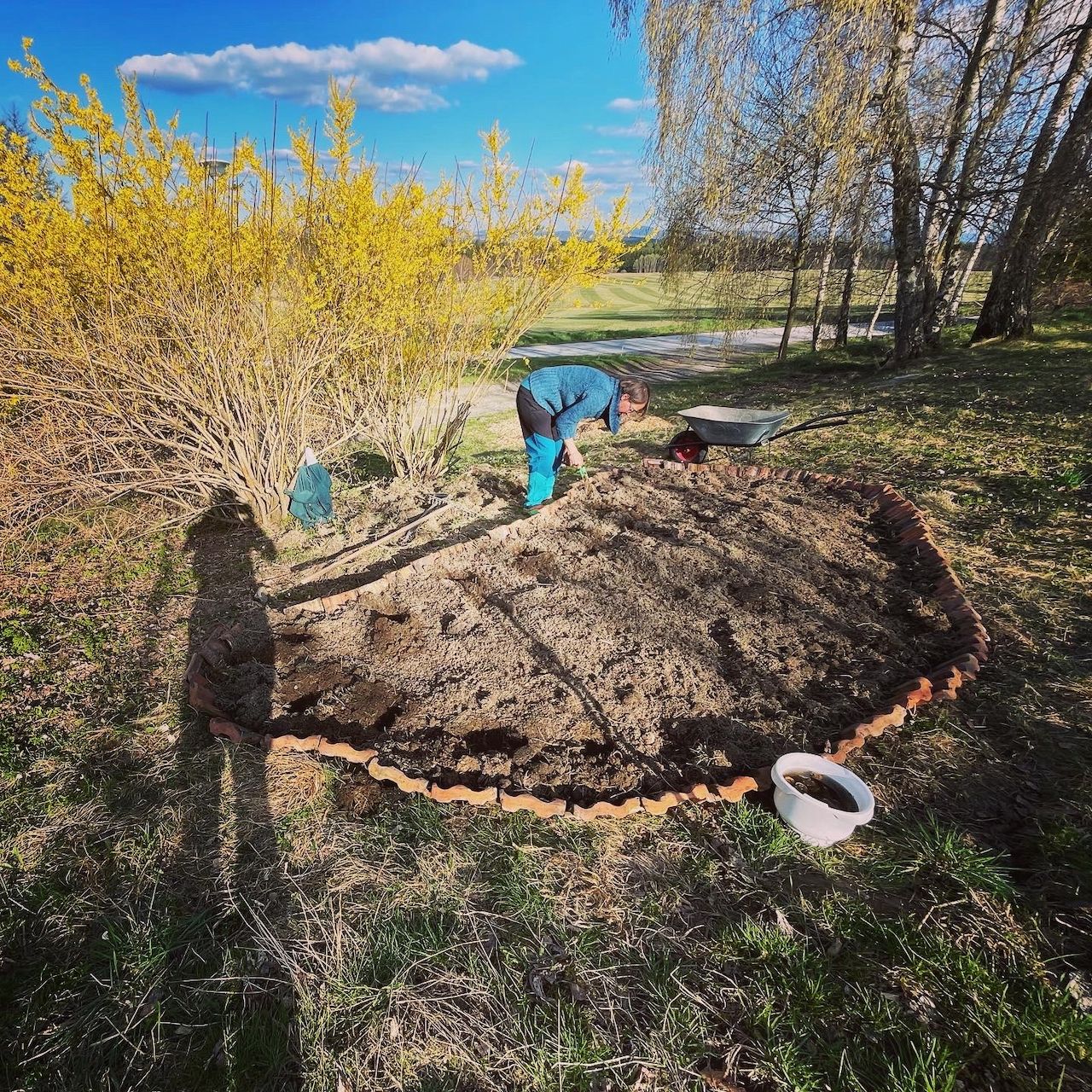 - sadili a sili jsme toho hafec. A zakládali ještě pár záhonků. Tak třeba budou i jahody a topinambury.