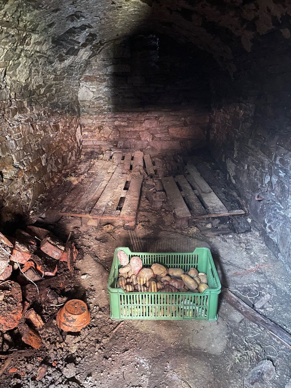 - vybrat sklep na brambory a zkusit si v něm trochu pohrát. Je hodně vlhkej a když prší, tak jsou zdi dost vlhký. S tím sotva co udělám, je ve svahu, ale nějak seskládat podlahu, dát tam trochu štěrku a udělat odtokový korýtko, by mohlo zabrat. Nemáte někdo zkušenosti, kudy do toho svépomocí?
