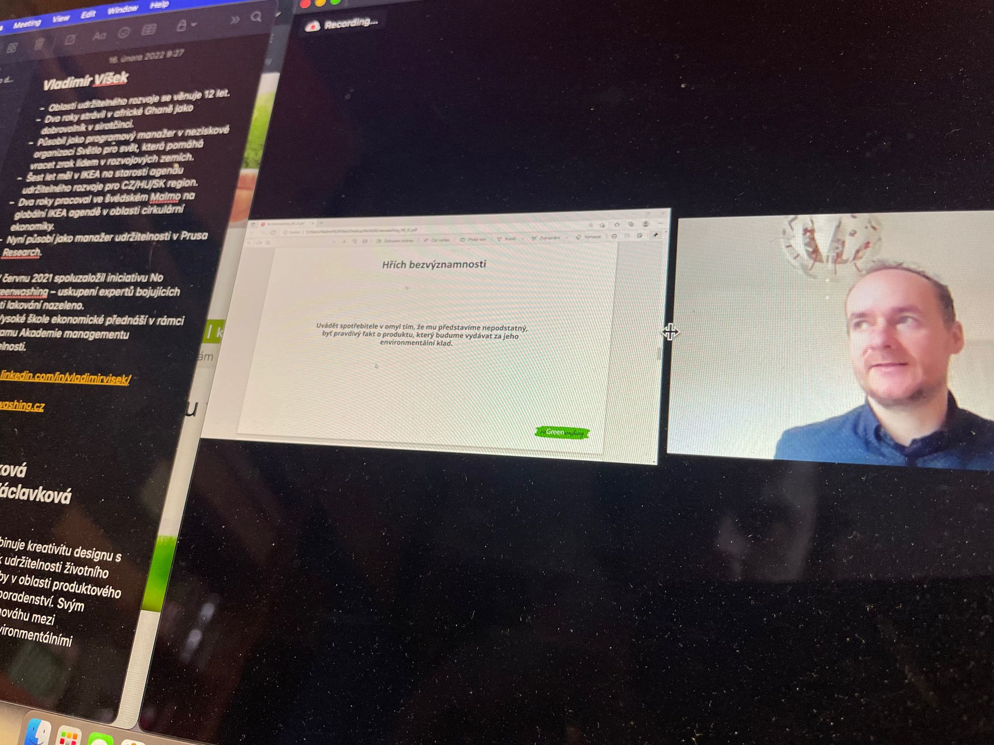 - A pomáhal jsem dávat dohromady minikonferenci o udržitelnosti v Českých Budějovicích. Tak mi to udělalo radost.