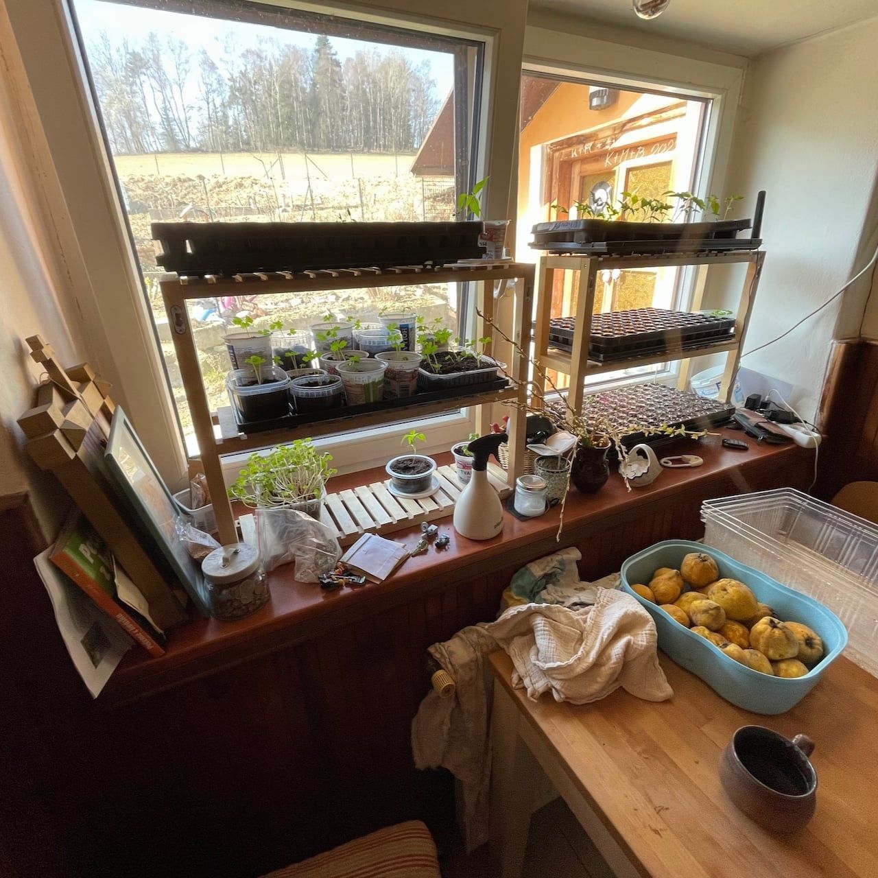 - doma na jediným použitelným okně pečujem o přísadu. Celer, papriky, rajčata, brokolice... Něco jde líp a něco hůř. Ale vzhledem k prostoru, kterej máme, to jde vlastně hrozně hezky.