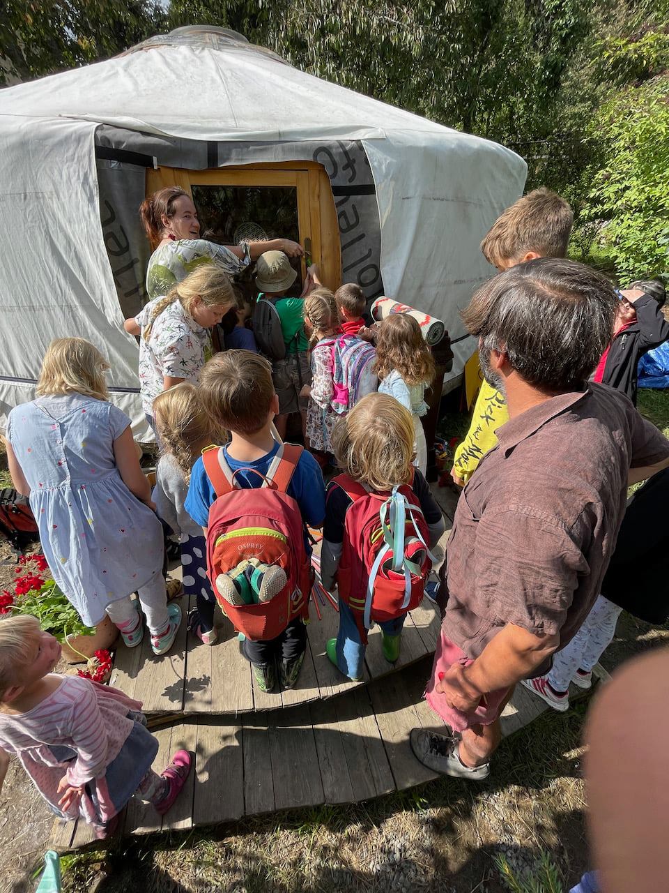 - měli jsme první školní den v naší komunitní školičce. Bude v jurtě, budeme tam provázet děti i my rodiče. Bylo to krásně vzájemný, plný respektu, poslouchání. Byla tam moje máma, která byla na prvním školním dnu nějakého mrněte (letos Kubíčka) snad už podesáté. A já se hrozně těším na to, že tam s děckama vymyslíme nějakou hezkou věc, ze které bude mít užitek možná i celá vesnice. Volám si teď s lidmi, kteří vědí, jak ukazovat dětem oblast podnikavosti a je to teda superkrásná oblast.